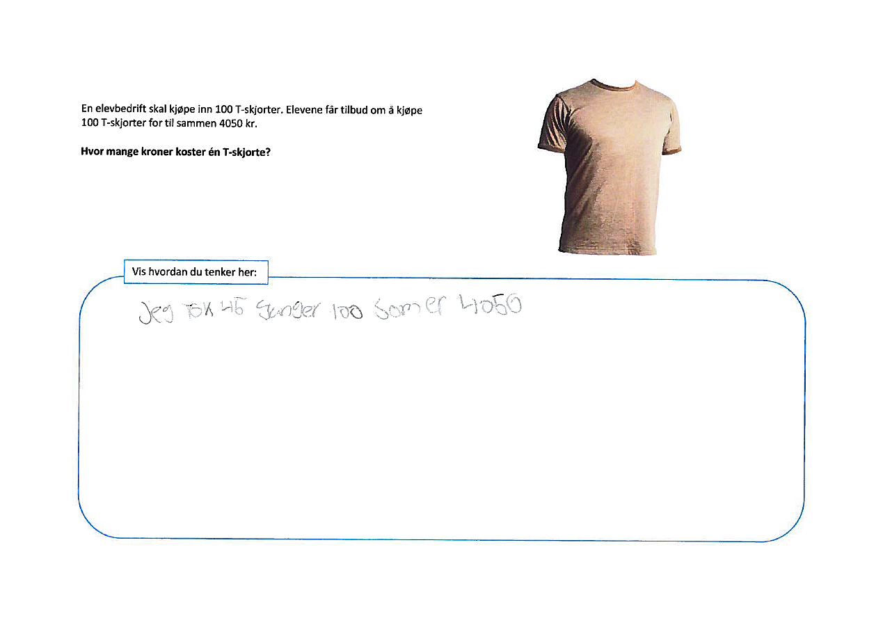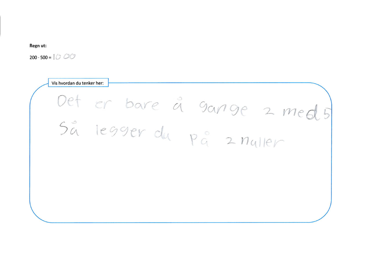 Nedenfor er noen elevsvar fra da oppgavene ovenfor ble testet ut på papir, uten svaralternativer. Svarene er gitt av elever fra 5. til 10. trinn.