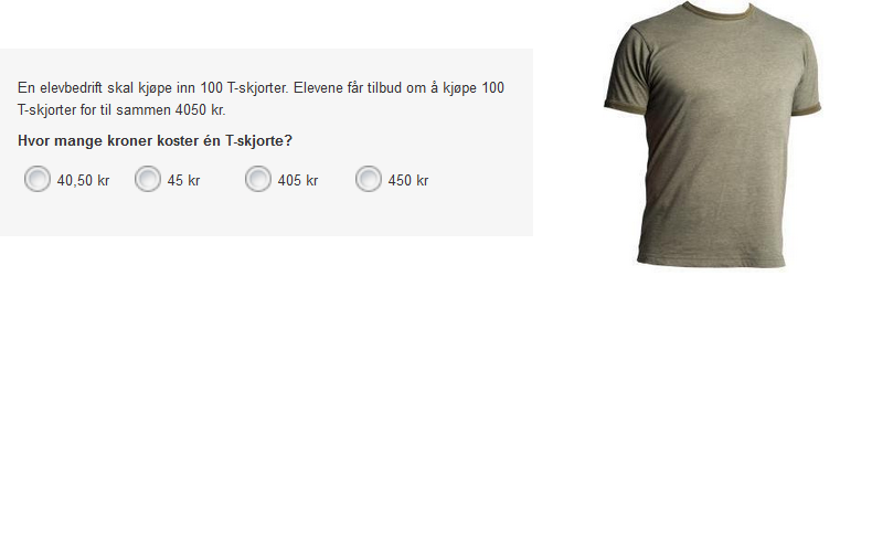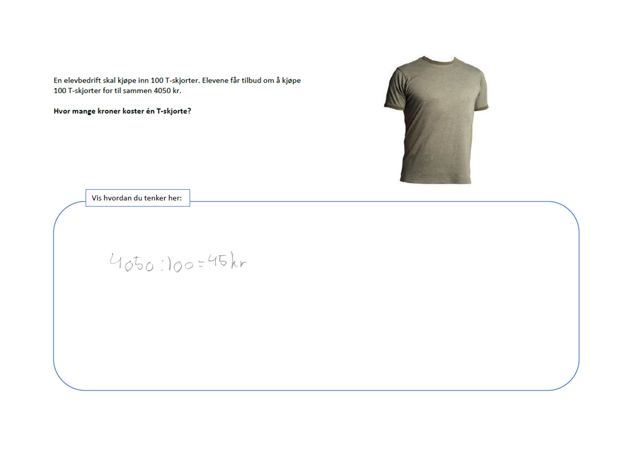På 6. trinn svarer 75 % av elevene som svarte 45 kr i oppgave 3, enten 8,4 eller 80,40 i oppgave 10. Tilsvarende tall på 9. trinn er 69 %.