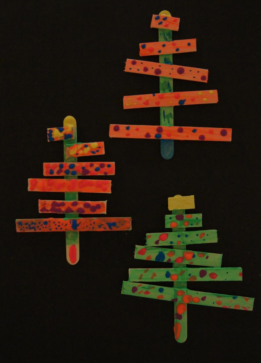Når limet har tørket kan barna dekorere minijuletreet sitt med tusj eller maling.