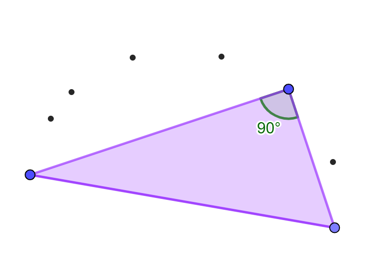I denne aktiviteten er det lettest å tegne trekanten hvor start-linjestykket er en katet. Elevene kan for eksempel tegne en normal linje i et av punktene. Eller de kan lage en vinkel med fast størrelse (90°) i et av punktene. Begge måter gir en dynamisk, rettvinklet trekant.