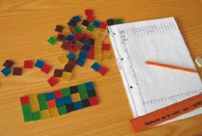 Hvis skolen ikke har kvadratiske brikker, kan elevene bruke fyrstikker eller tegne rektangler på ruteark.