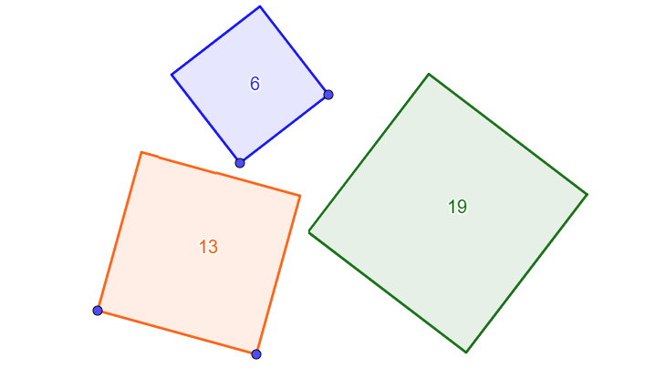- Tegn et nytt, dynamisk kvadrat med areal lik summen av arealene til de to kvadratene.
