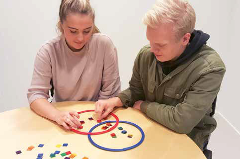 - Skyv 5 blå elev-brikker litt for seg selv. Dette illustrerer de elevene som ikke liker noen av de to idrettene vi jobber med.