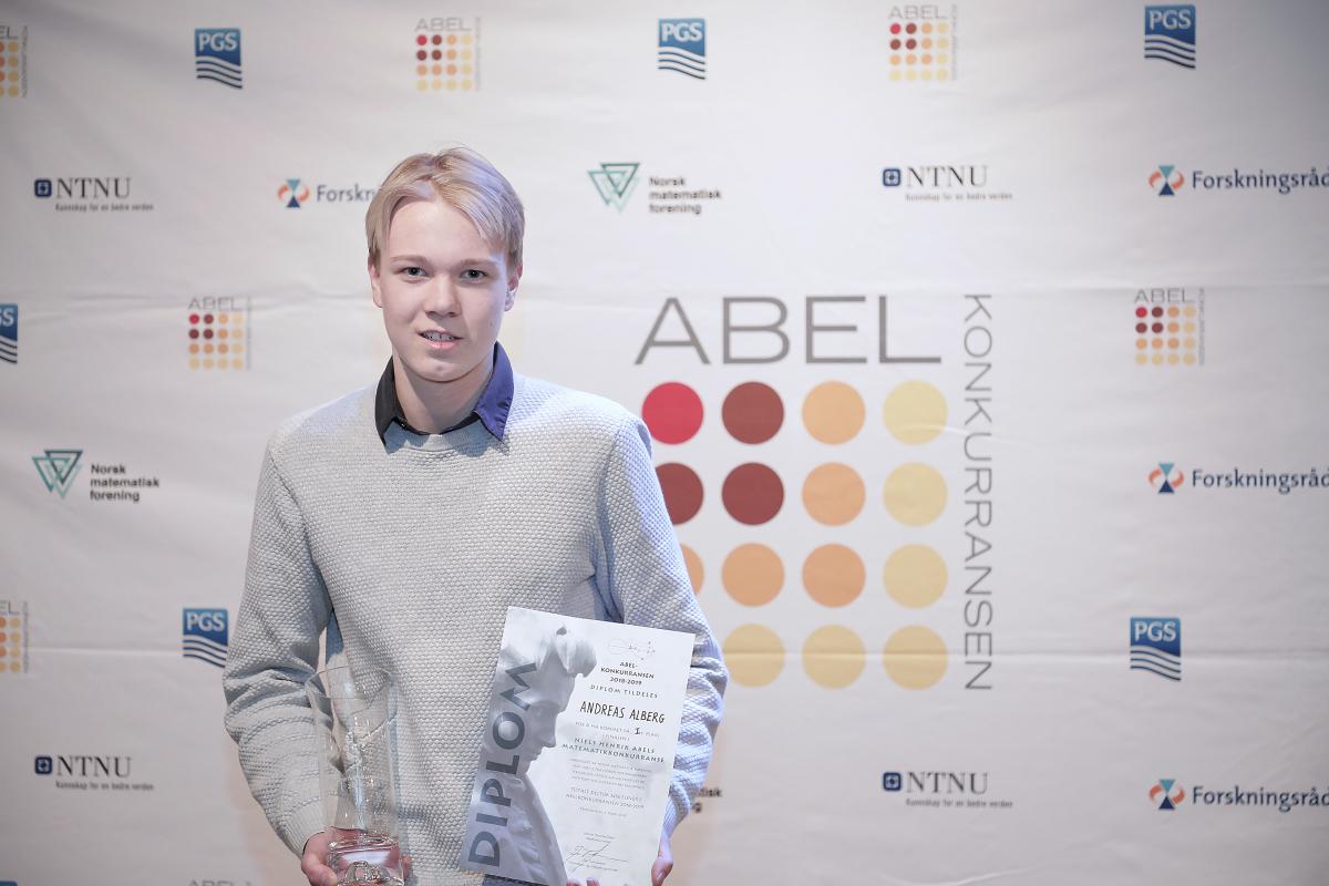 Mattetalentet Andreas Alberg utkonkurrerte mer enn 3400 deltagere fra de innledende rundene, og 24 andre finalister før han gikk av med seieren i den gjeveste realfagskonkurransen for elever på ungdoms- og videregående skoler i Norge. Alberg vant 15.000 kroner og muligheten til å representere Norge i den internasjonale matematikkolympiaden i Bath, England den 15. - 22. Juli 2019.
