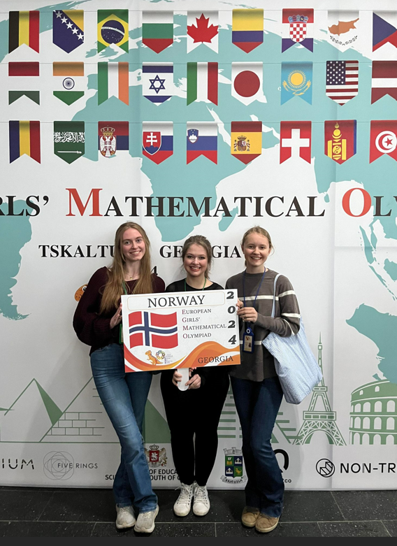 Deltagere EGMO 2024: Lovise Foss Linnestad, Yuliya Zabelina og Victoria Lund Søraas (Torvei Johanne Medhus Hjelvik var ikke med på bildet)
