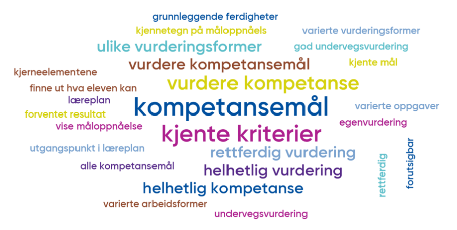 Illustrasjon: Hva kjennetegner god standpunktvurdering? Ordsky fra en av samlingene i «Vurdering og LK 20»