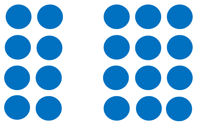 Ved bruk av samtaletypen Sammenligne og knytte sammen skal dere legge til rette for at elevene ser sammenhenger mellom ulike måter å se og beskrive bildet på, og oversette mellom ulike representasjoner. Det faglige målet for elevene er distributiv egenskap ved multiplikasjon, som i dette bildet kan utrykkes som 5 · 4 = (2 + 3) · 4 = 2 · 4 + 3 · 4. Det kan være fristende å forfølge andre interessante ideer som oppstår undervegs i samtalen, men i denne type samtale handler det om å dykke dypere ned i sammenhengene som er målet for samtalen.